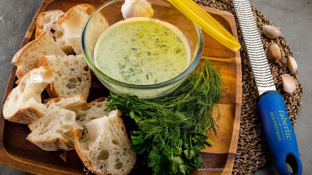 Добавьте оливковое масло, йогурт, лимонный сок. Все хорошо перемешайте. Такой соус отлично дополнит мясные и рыбные блюда, а также его можно подавать со свежеиспеченными лепешками. - Шаг 6