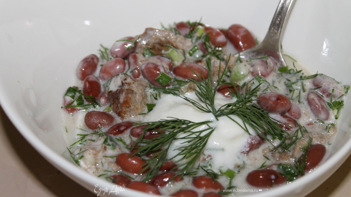 Я предлагаю приготовить тюрю с фасолью и простоквашей. Блюдо получится очень сытное и вкусное. Для тюри я использовала консервированную красную фасоль «Фрау Марта». - Шаг 2