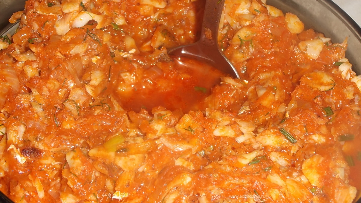 1странное блюдо. Можно было добавить к зажарке кусочки рыбы и все потушить. Была бы рыба в томате с овощами без отваривания, и уж рыба так рыба, без раскрошенных кусочков. Не оценивала, чтобы рейтинг не занижать.