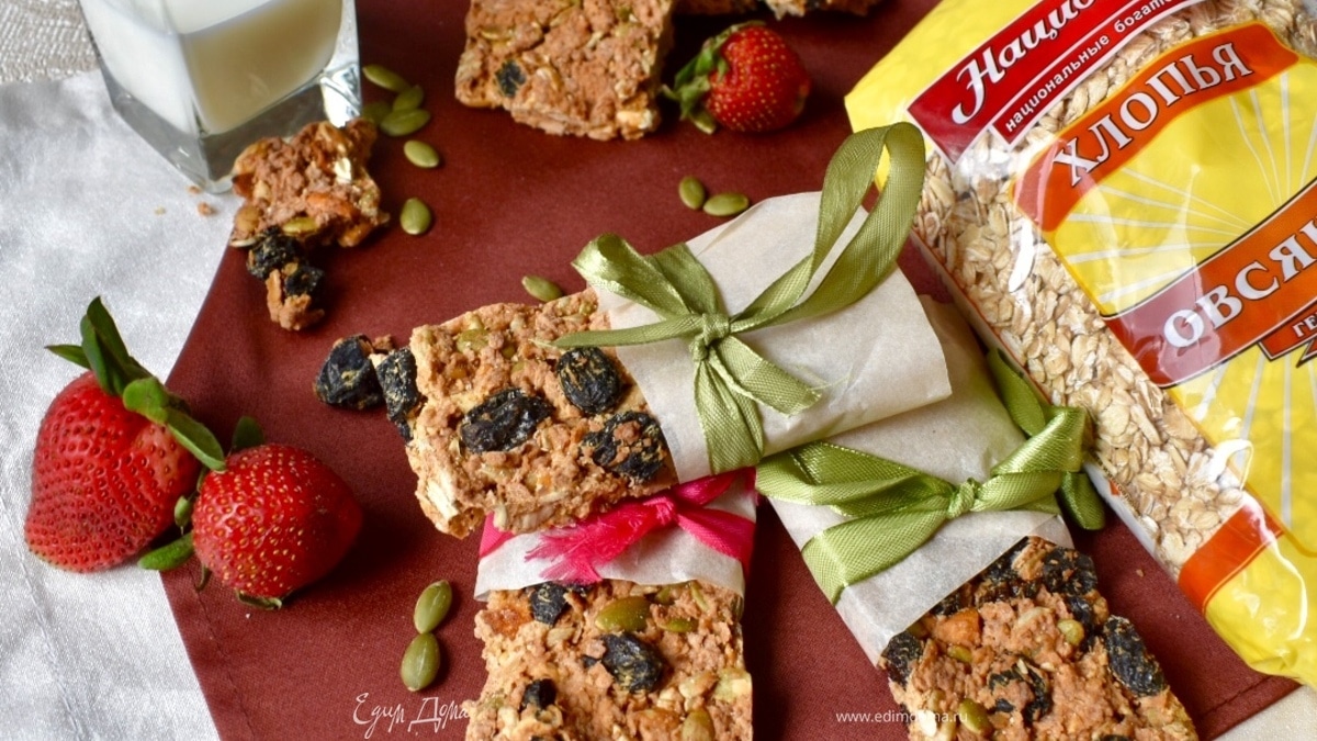 Не поверите, но после своего предыдущего рецепта «Клубнично-ванильной бриоши с ананасами» — этакой сдобной и калорийной бомбы, сегодня я принесла вам диетические овсяные батончики, в которых нет ни грамма сахара и жиров! Не в диетах суть, а в том, что в моем доме практически не бывает покупного печенья, батончиков, пирожных и прочих сладостей, кроме, пожалуй, хорошего шоколада. Так вот, на просьбу сына в магазине купить злаковый батончик я ответила просто: «Сынок, а давай я лучше тебе его приготовлю?» И приготовила!