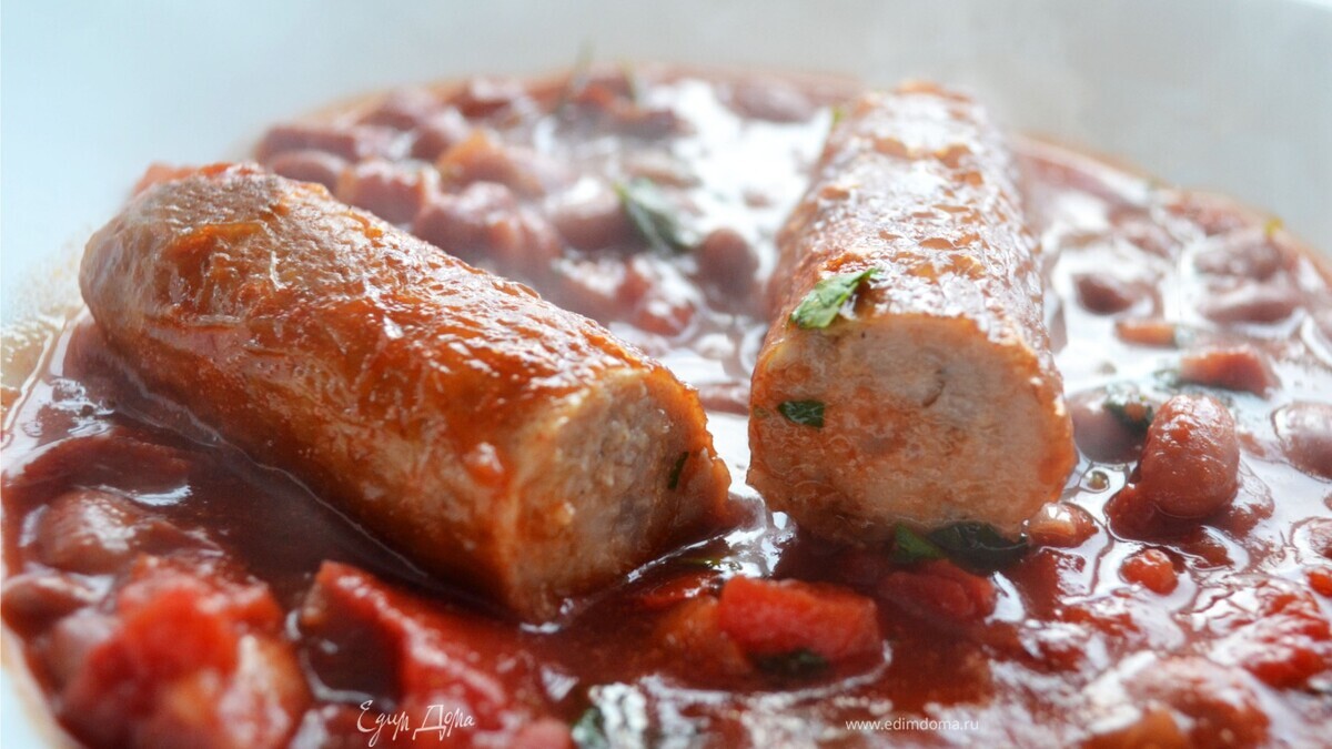 Все готово! Сочные вкусные колбаски и ароматная фасоль с томатами) Приятного аппетита!
