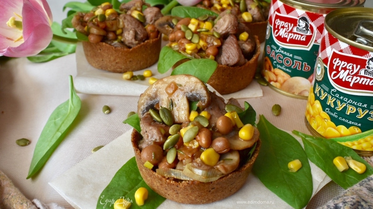 Мини-тарты с салатом из индейки и овощей
