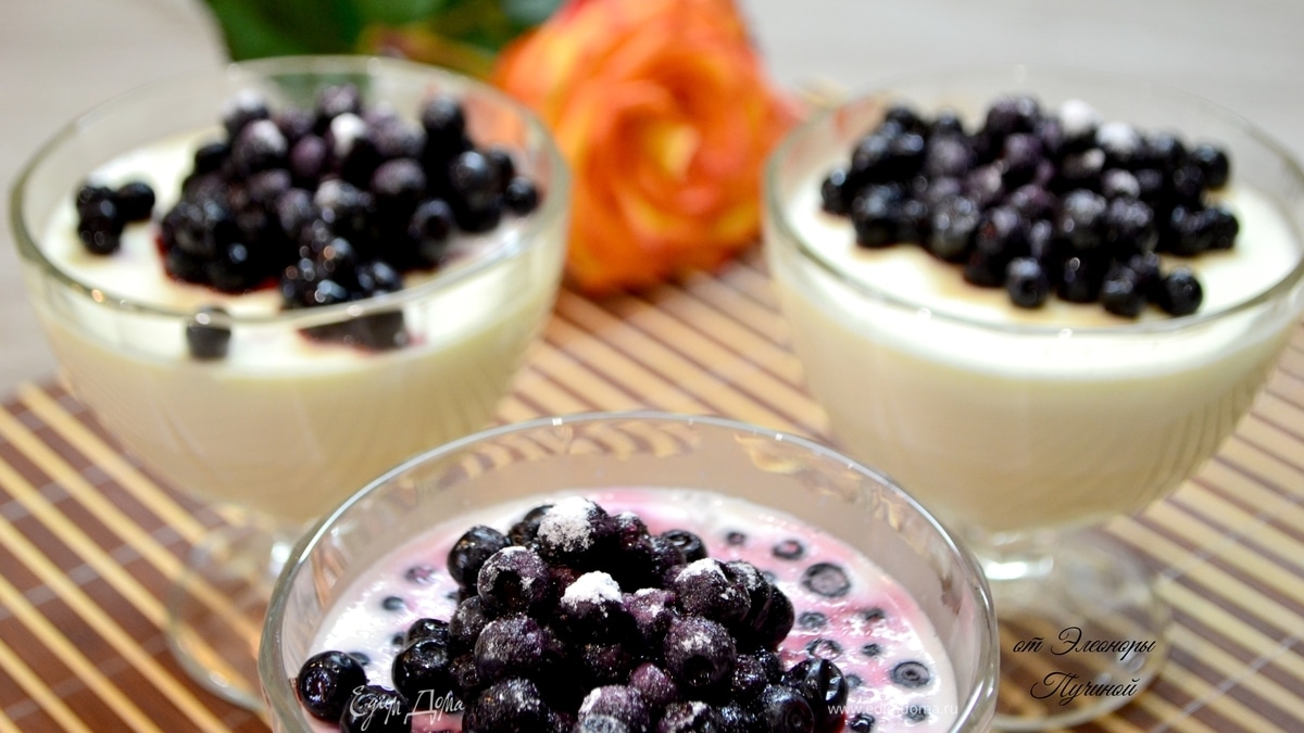 Далее разливаем по формам или креманкам. В две креманки со сливками я добавила ягоды черники. Отправляем в холодильник минимум на 2 часа, до полного застывания. - Шаг 3