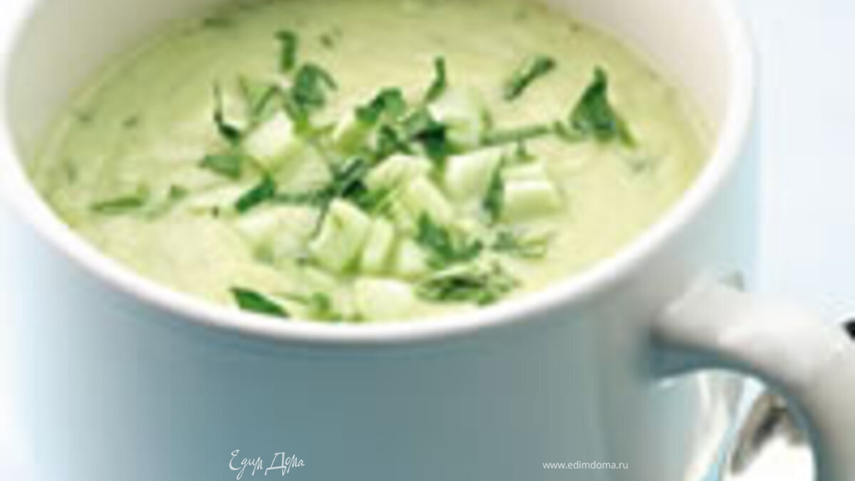 - Шаг 2Взбить суп в блендере. Добавить авокадо и зелень петрушки или укропа. Должна получиться однородная масса. Будьте осторожны, когда готовите пюре из горячей жидкости. Охладите суп-пюре и добавьте йогурт. Все размешать и разлить по чашкам. Украсить кусочками огурца и зеленью.