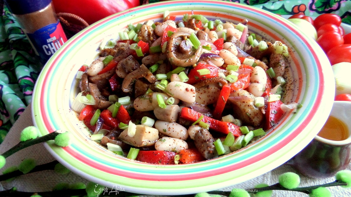 Если остались запасы маринованных грибов и вы идете на пикник, предложу такую простую закуску. Состав минимальный. Хорошо перенесет перевозку, только лучше настоится. Ярко смотрится даже на праздничном столе. И главное, вкусно! За рецепт спасибо Суслик Маринке.