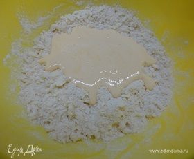 Смешать масляную крошку с яичным желтком и замесить тесто.
