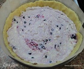 Уложите на тесто слой творожной начинки и запекайте в духовке, разогретой до 180°C, 30 минут.