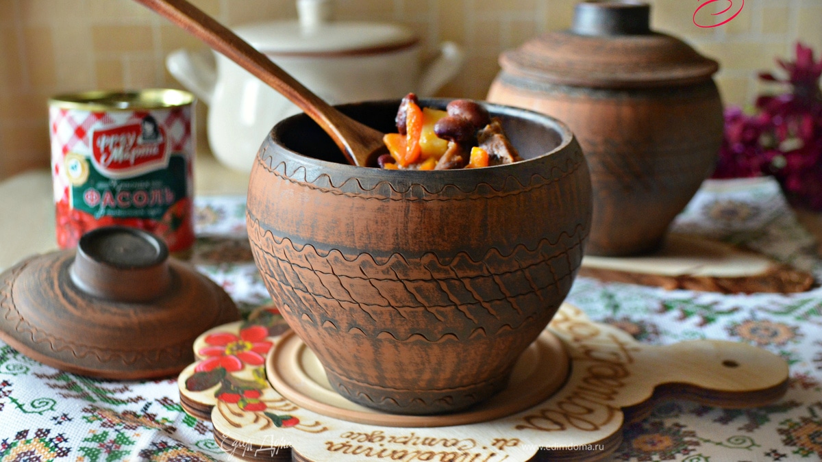 Баранина с фасолью и овощами, приготовленная в горшочках