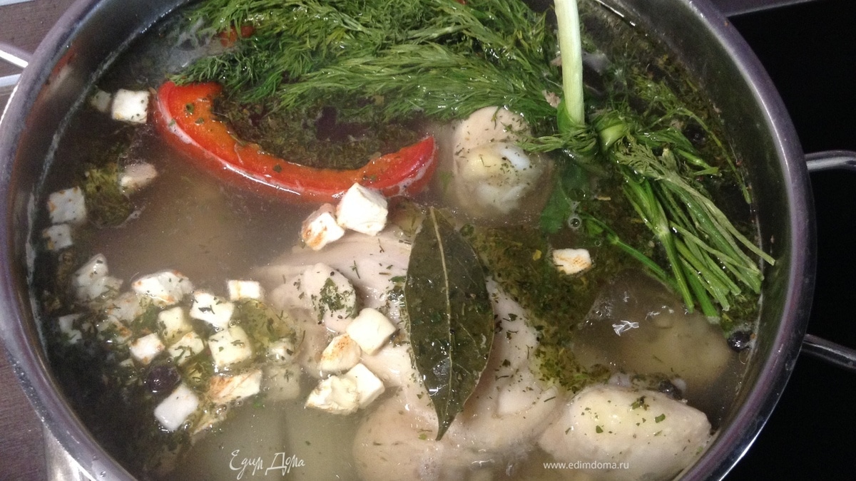 На сильный огонь, и как только закипело, бросили укроп и корень сельдерея вяленый (припасен же?) и сразу же выключили. Крышкой закрыли. - Шаг 6
