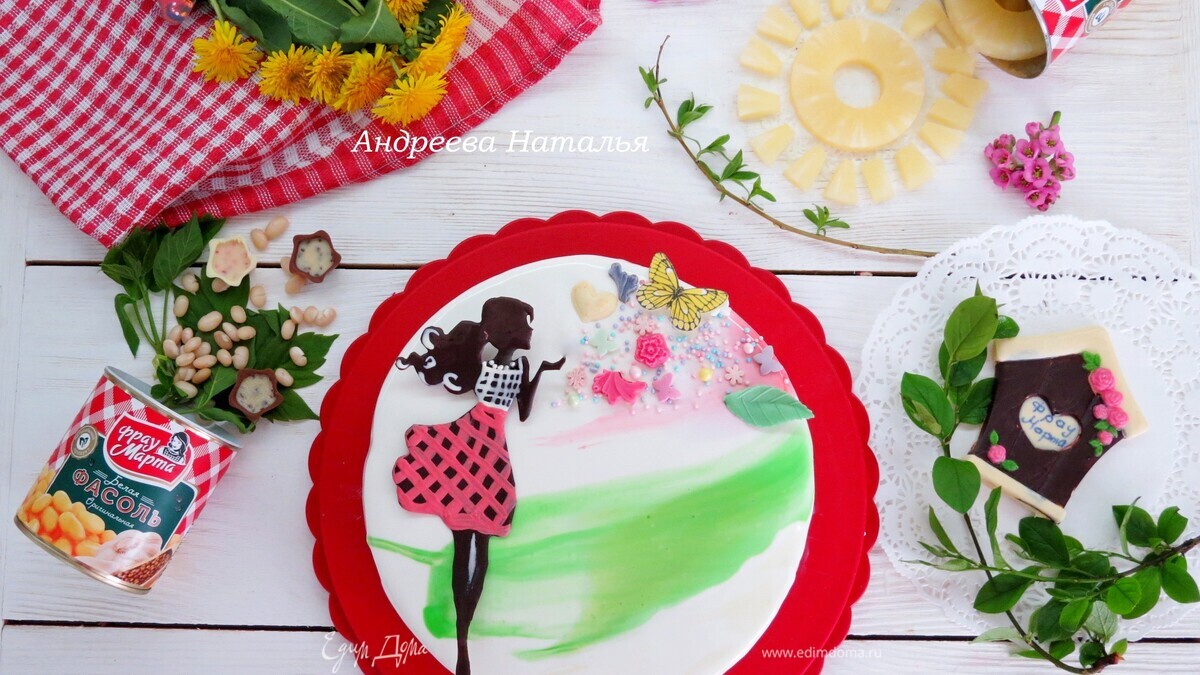 Наташа, отличный торт. Брауни из фасоли получается очень вкусный, плюс фруктовые нотки и в итоге отличный десерт с необыкновенным декором. Браво!