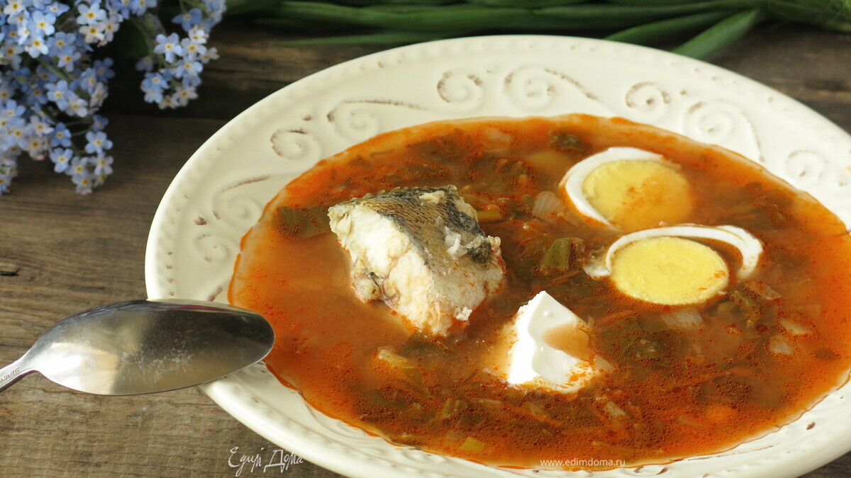 Попробуйте борщ с зеленью, сваренный на бульоне из судака. Приятного аппетита!