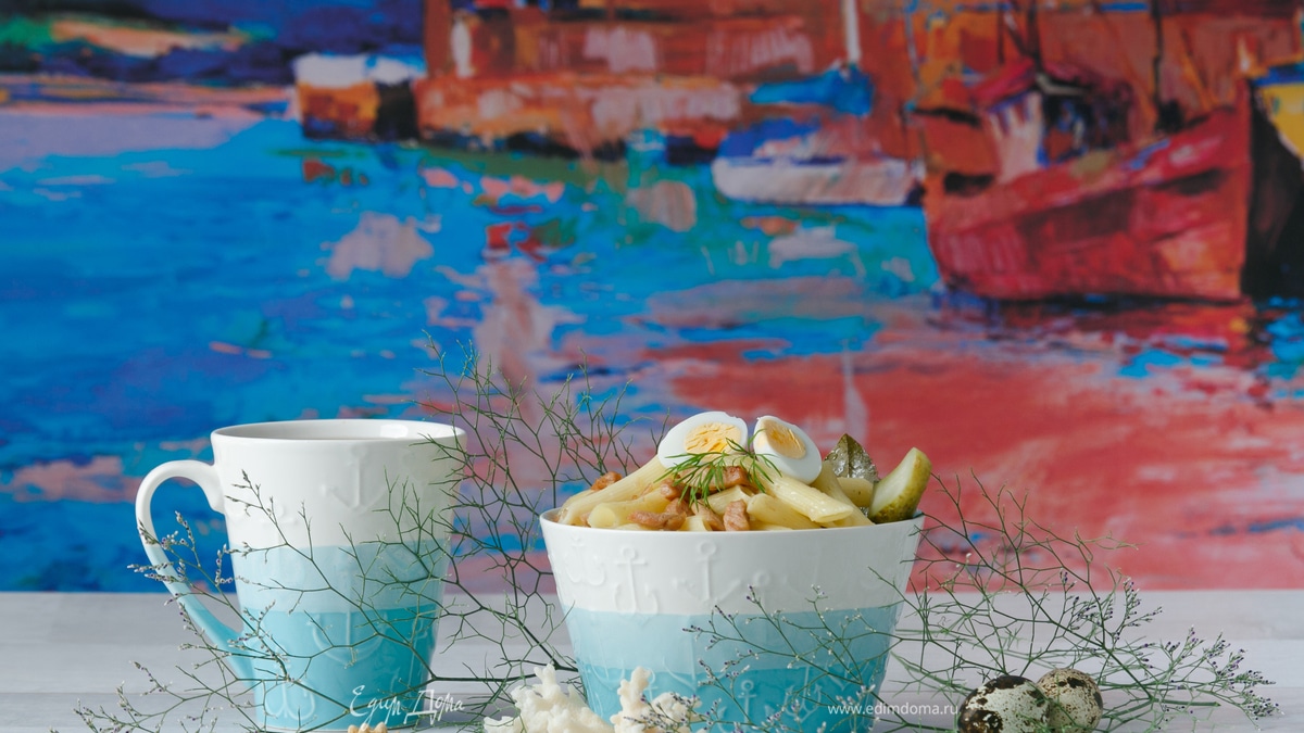 Ингредиенты настолько простые, что проще не придумаешь, и они всегда есть дома. Подготовим филе тунца в оливковом масле ТМ «Магуро», трубчатые макароны, морскую соль, репчатый лук, черный перец горошком, лавровый лист. Остальное по вкусу. Я еще взяла перепелиные яйца, так как они идеально подошли для создания морской тематики, ведь они очень похожи на яйца чаек. - Шаг 2