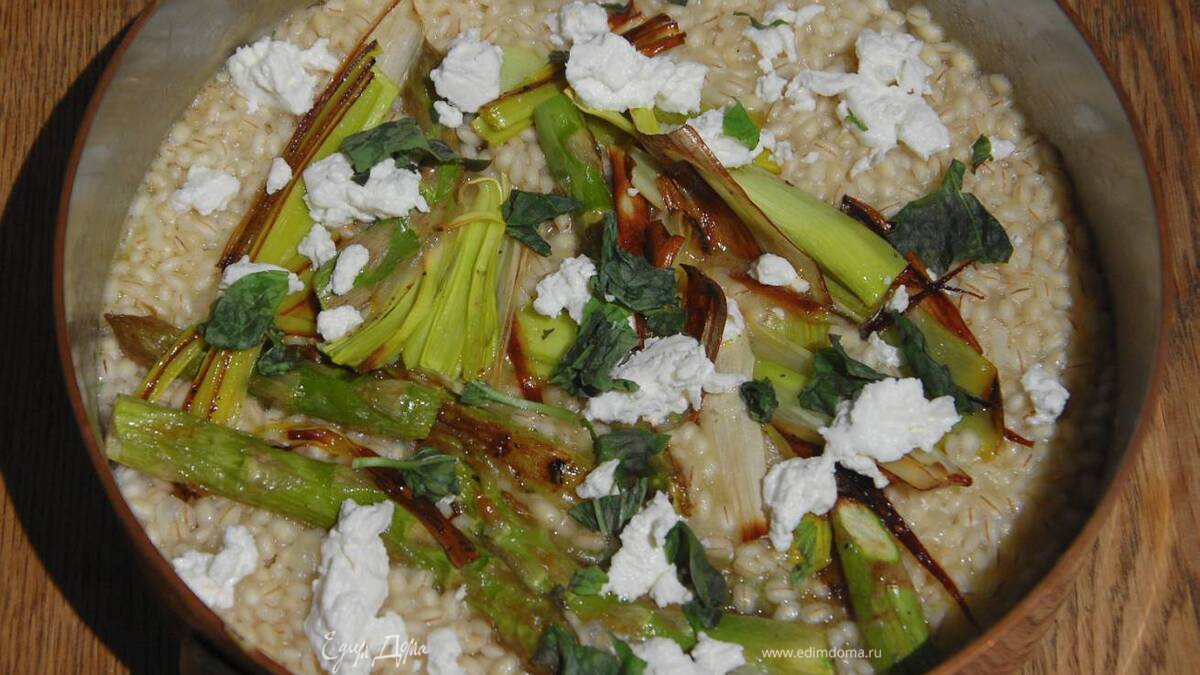Перлотто со спаржей и козьим сыром