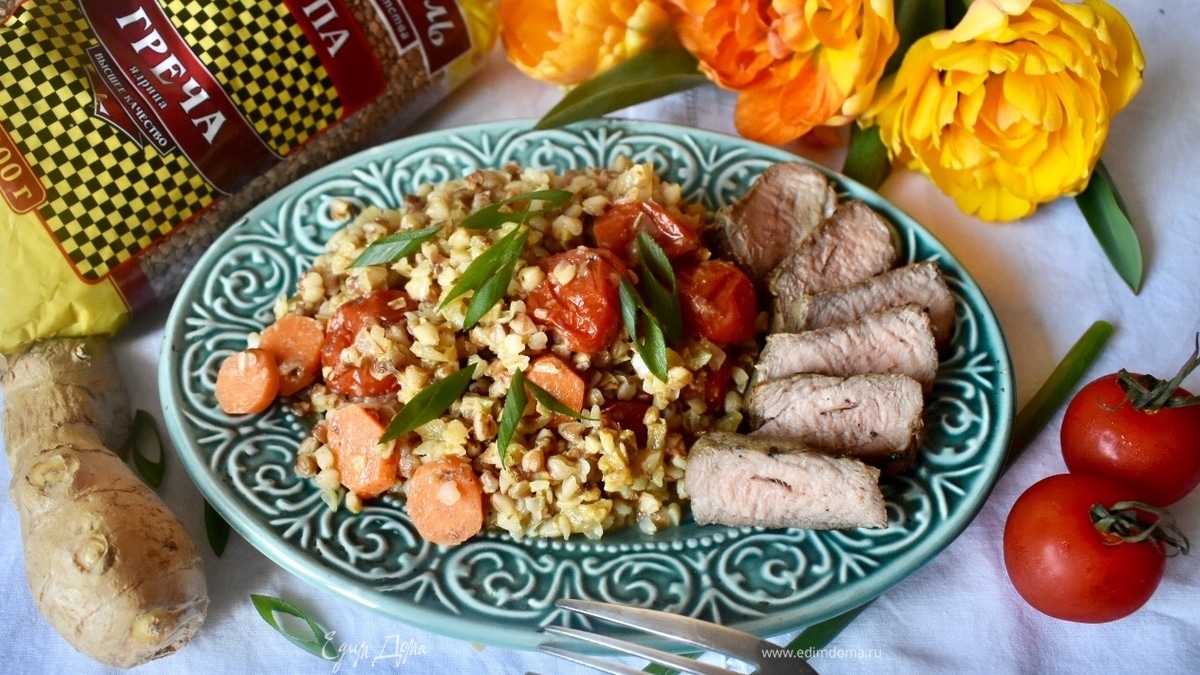Гречка в сливочно-имбирном соусе с мясом на гриле
