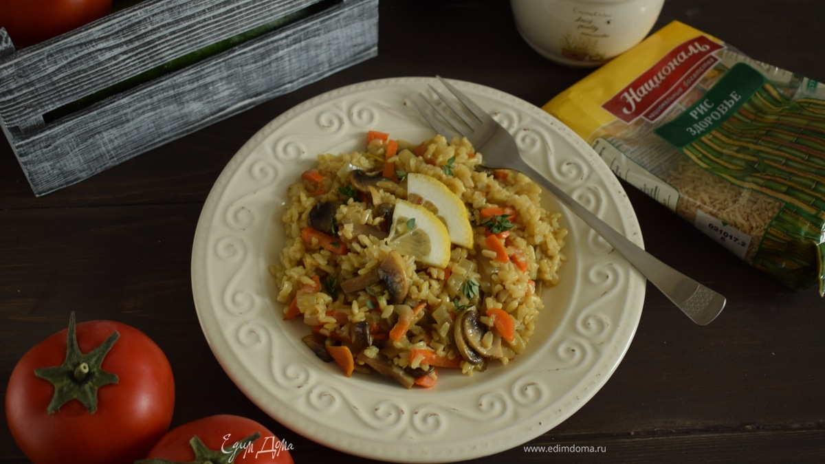 Грибы — замечательная альтернатива мясу в любимом многими плове. Простой в приготовлении рецепт из самых доступных продуктов. А с бурым рисом блюдо становится еще и очень полезным.