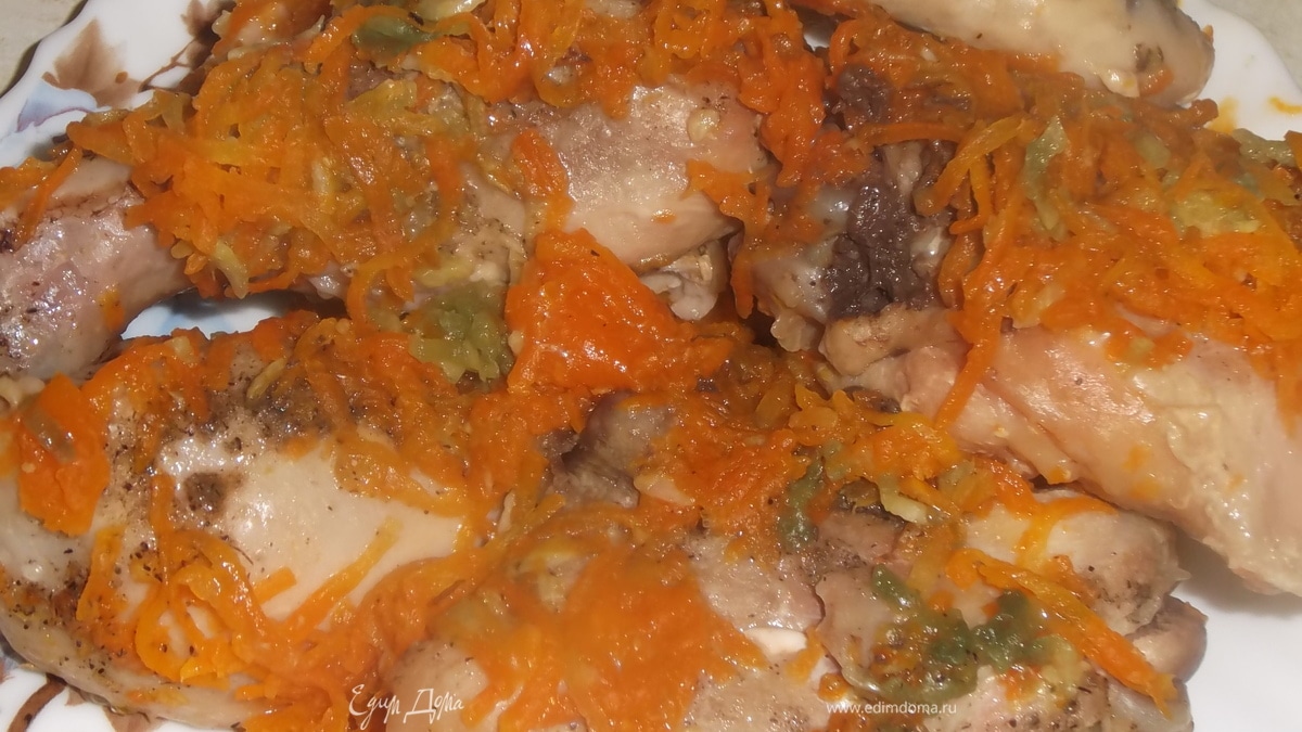 Укрыть курицу оставшейся половиной моркови с чесноком. - Шаг 4