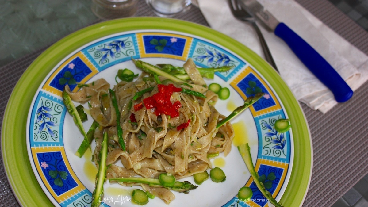 Сейчас в Италии сезон лесной спаржи, и я просто обожаю этот период! Во-первых, я очень люблю спаржу в любом ее виде, а во-вторых, это большой азарт — искать ее в лесу, и принимать дары земли в виде зелено-сиренево-коричневых всходов. Те, кто любит собирать грибы, поймут меня! Лесная спаржа обладает ярко выраженным вкусом и она невероятно полезна. В ее составе витамины А, В, С, Е и К, высокое содержание калия и низкое содержание натрия, что участвует в стабилизации водообмена в организме, и самое главное — спаржа — это мощный антиоксидант. И менно из-за ее достаточно решительного вкуса я использовала в дополнение к лесной обычную, привычную нам спаржу. Тальятелле получились очень деликатными, я их приготовила на базе обычной, гречневой и льняной муки (рецепт выложу следом).