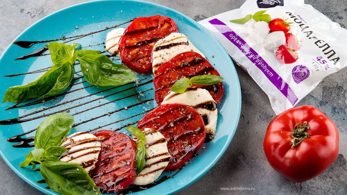 Выложите помидоры и моцареллу, чередуя, немного внахлест. - Шаг 5
