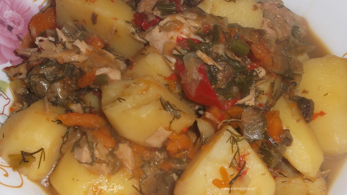 - индейка с овощами, индейка тушеная, картошка тушеная