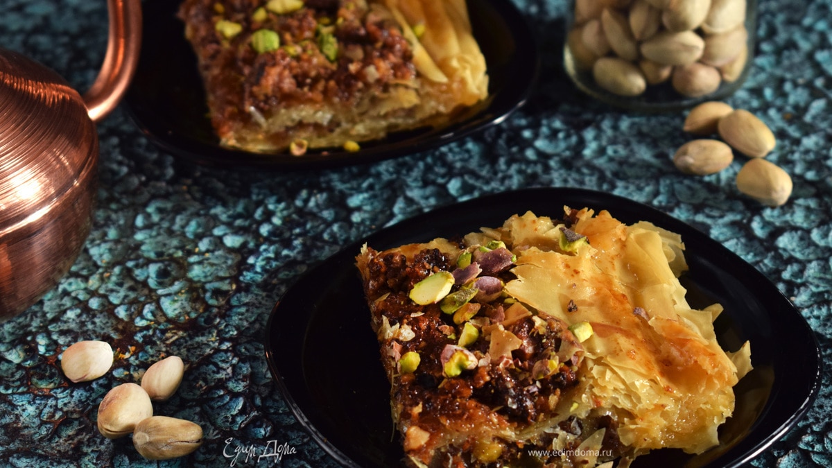 Любителям восточных сладостей посвящается. Простой в приготовлении пирог-пахлава из теста фило. Ореховая начинка и сладкий медовый сироп! Равнодушных не останется!