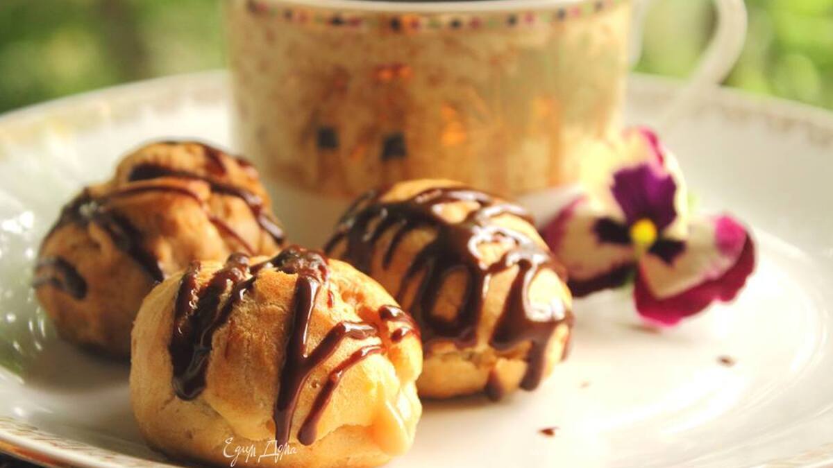 В одно утро мой шеф в рамках моей стажировки отправил меня «сегодня будете делать эклеры, увидите — это не сложно!». Ха! Им не сложно, они ж профи! А я и мешок пекарский никогда в руках не держала еще неделю назад. Два утра я училась и наполняла эклеры кремом шоко и кофе, возрождая вот ту свою влюбленность, еще из детства... И решилась-таки попробовать наколдовать их дома. Мои профитроли были очень вкусными, наполненными нежным и любимым шантильи, но... плоскими :)