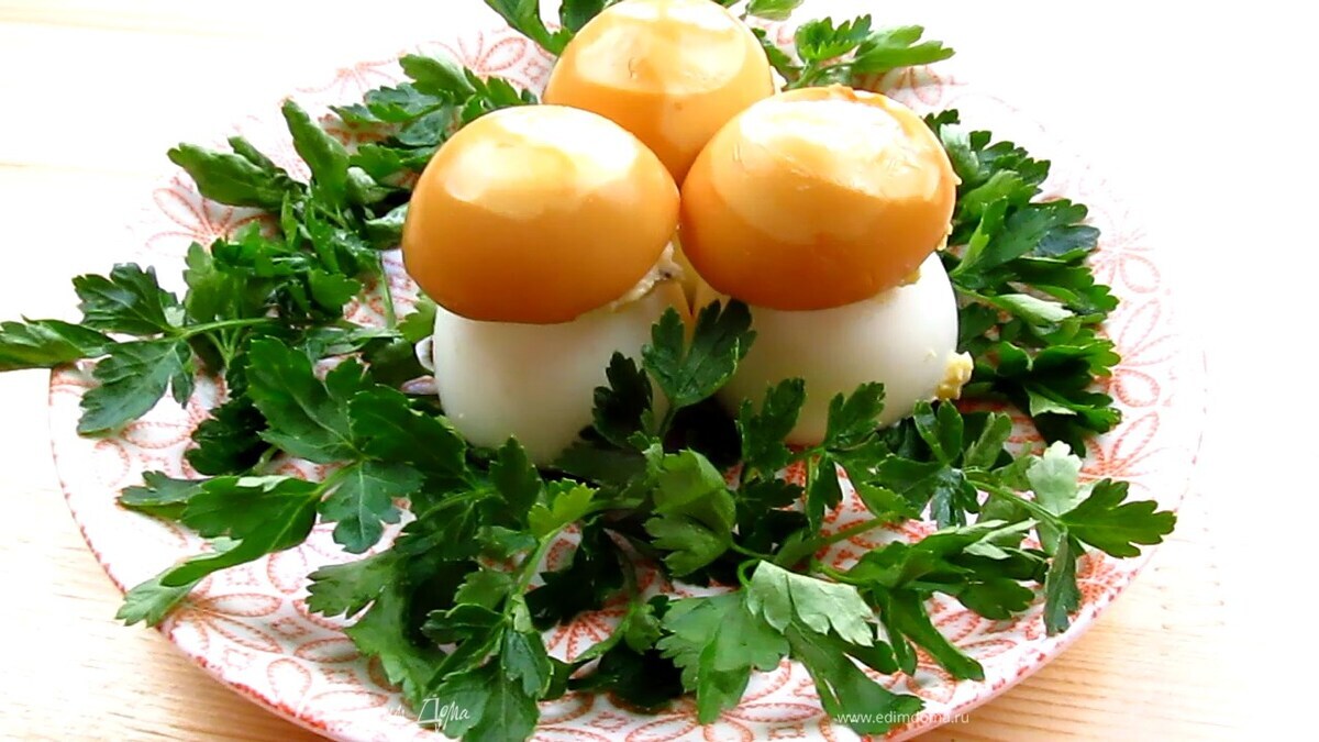 Вкусный и оригинальный рецепт закуски из яиц «Грибочки Боровики». Делается очень просто, а выглядит эффектно.