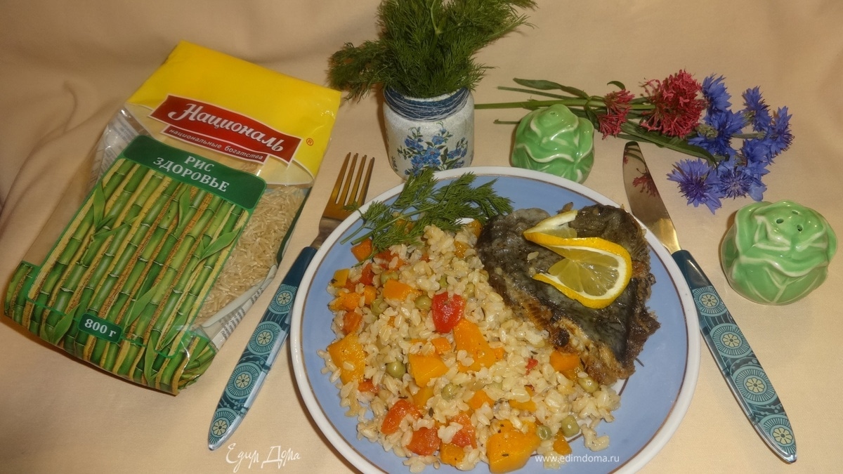 Камбала на рисово-овощной подушке