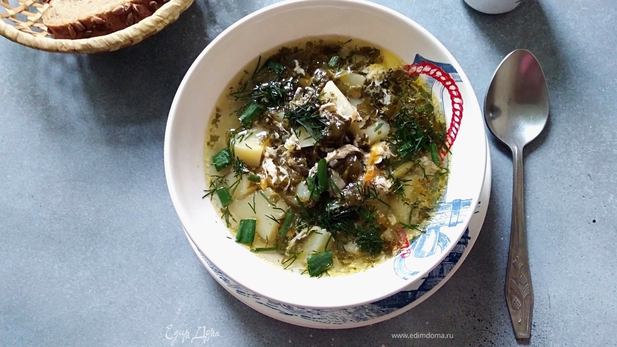 Суп со щавелем и шпинатом