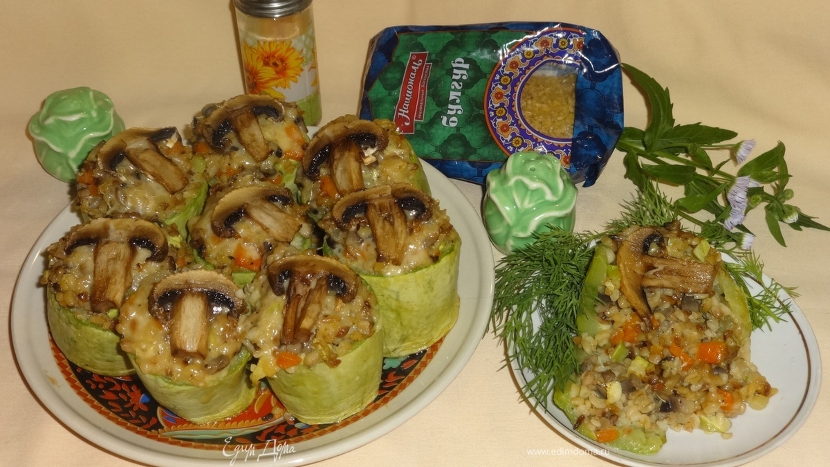 Кабачки, фаршированные булгуром и грибами