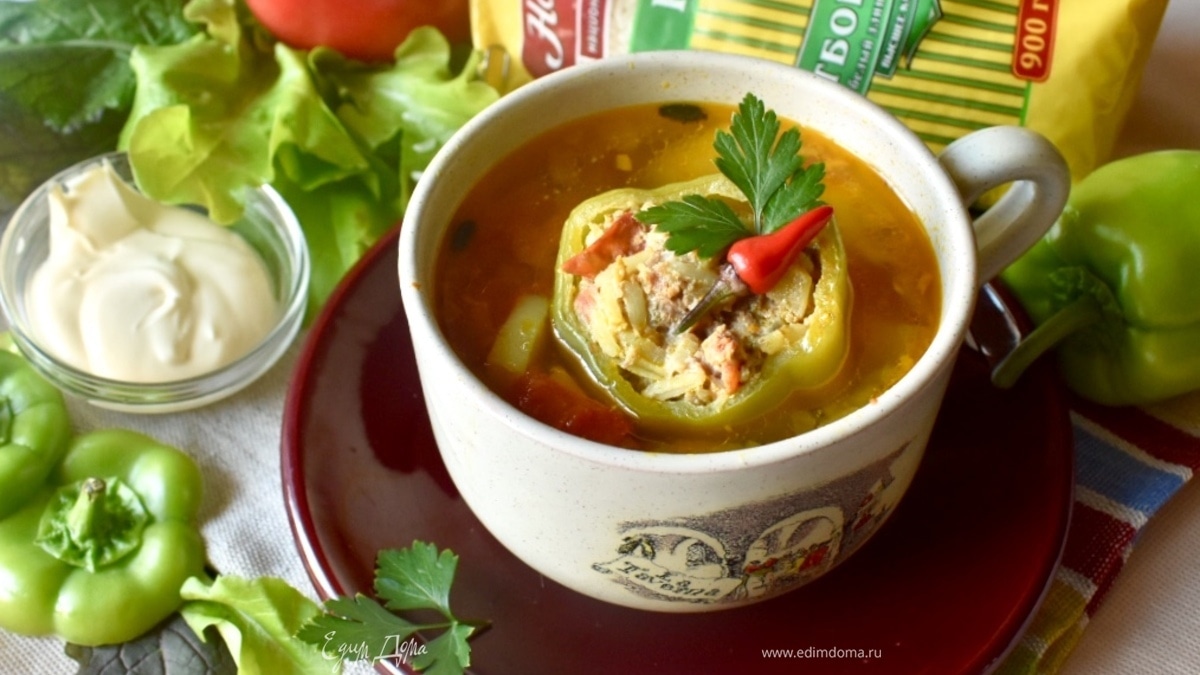 Суп с фаршированным перцем