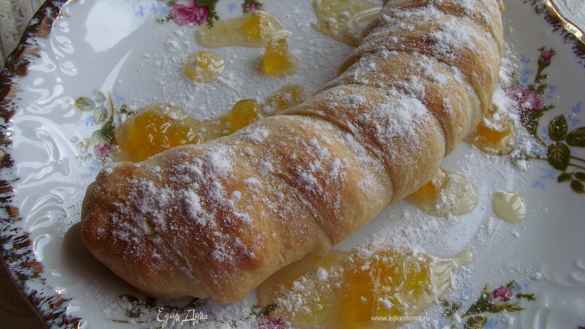 - Шаг 1Банан разрезаем вдоль как на фото 1 Затем наполняем выемку джемом как на фото 2 Затем нарезаем полоски из теста и обматываем бананы результат на фото 3 Выпекаем в разогретой духовке при температ 150-180 гр около 15 мин до готовности Украсим блюдо джемом выложим наш десерт и посыпем пудрой Приятного аппетита