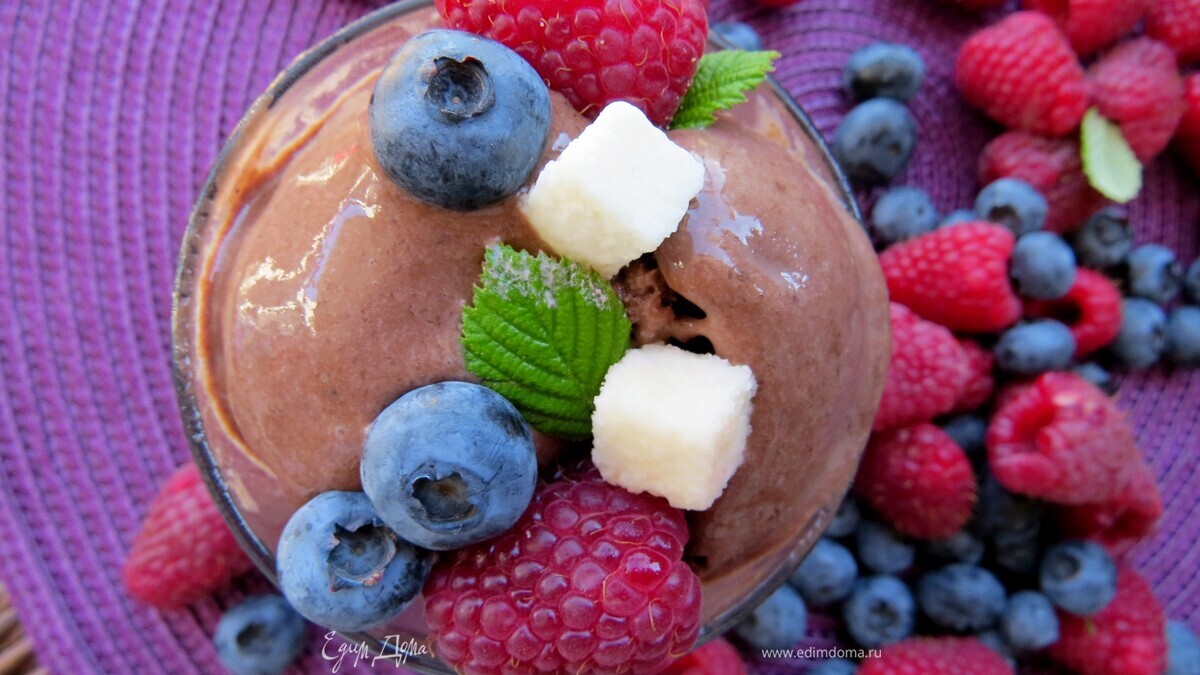 Такое мороженое по консистенции не отличается от сливочного и не образует кристаллов льда. Очень вкусно подавать с ягодами и листочками мяты. Приятного аппетита!