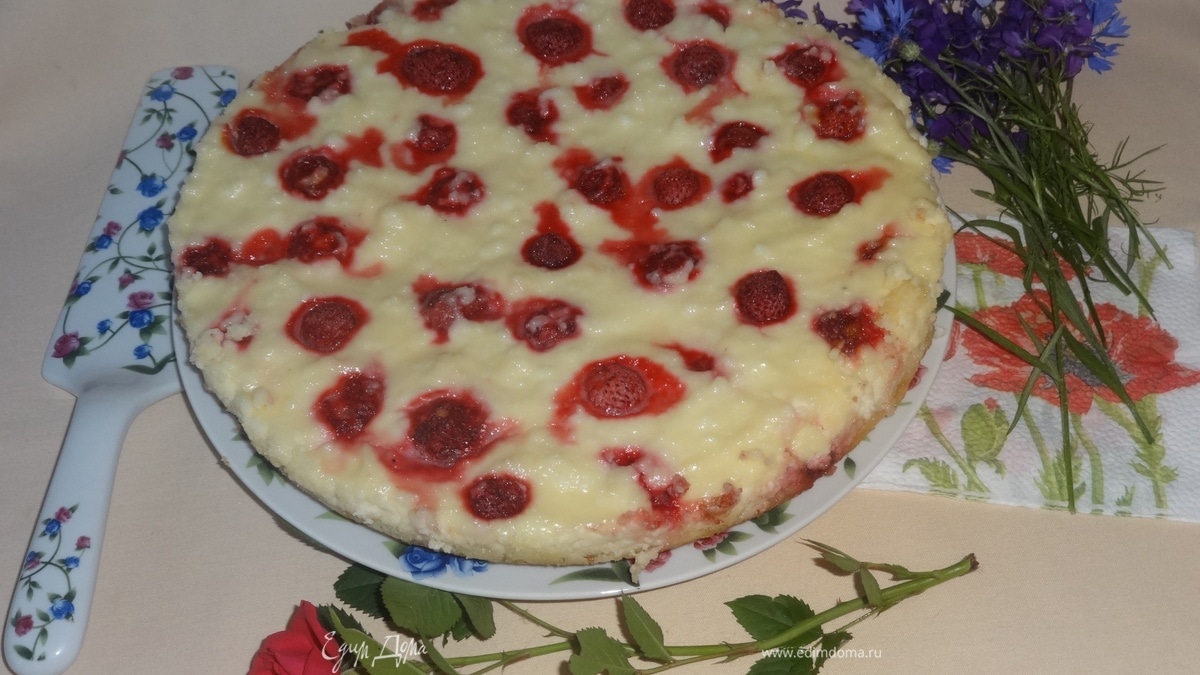 Любимая подруга привезла в подарок ведерко клубники со своей дачи. Наелись от души! А из остатков я испекла нежную запеканку к чаю.