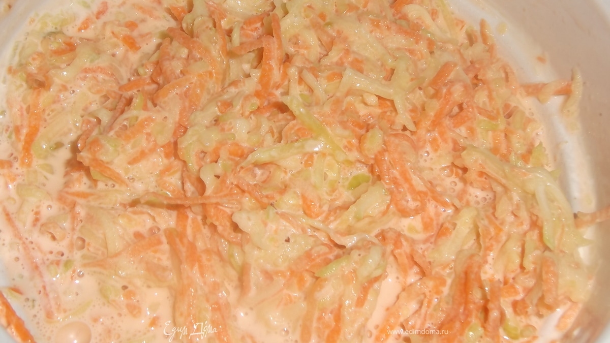 Морковь, кабачок и чеснок натереть на терке. Посолить. - Шаг 2