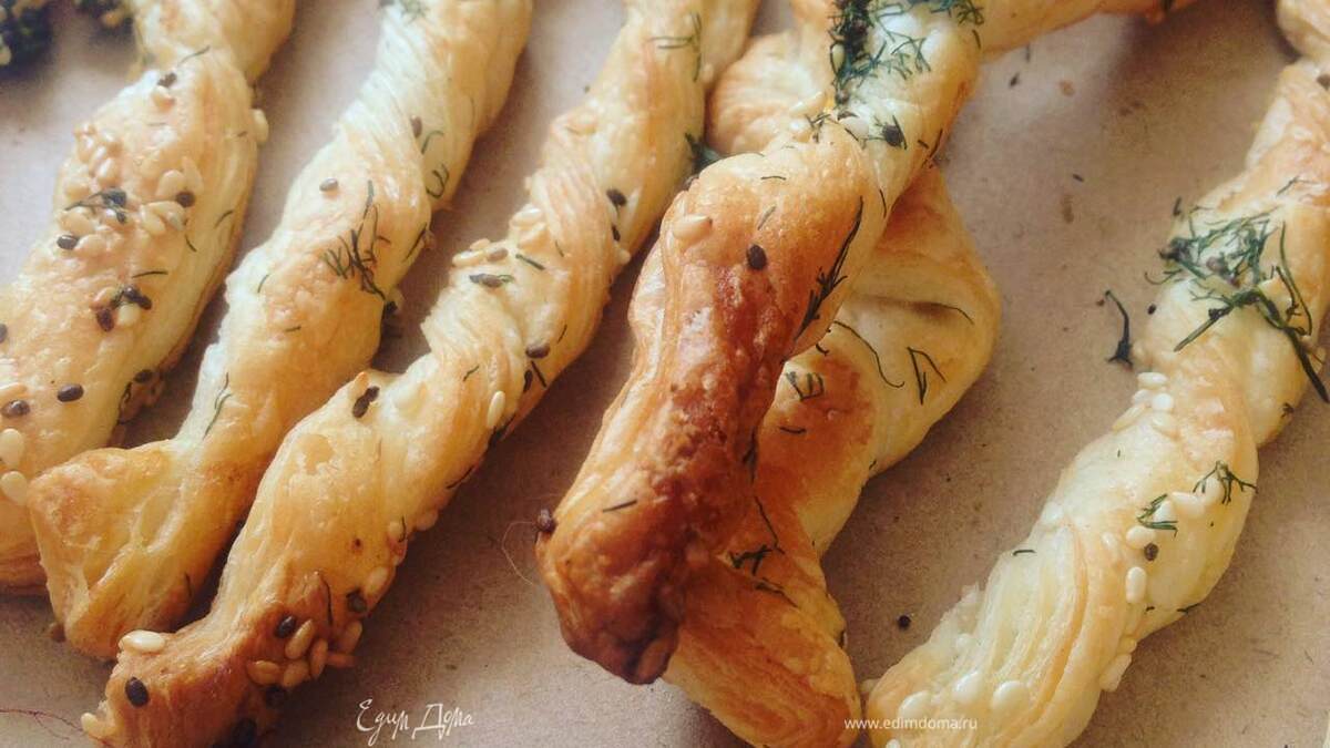 Скручиваем пластинку спиралью и обмакиваем в жидкости. Кладем на силиконовый противень или чуть смазать его маслом. Хлебные палочки запекаются 10–15 минут. Когда увидите, что они стали золотисто-коричневого цвета — можно доставать. - Шаг 6