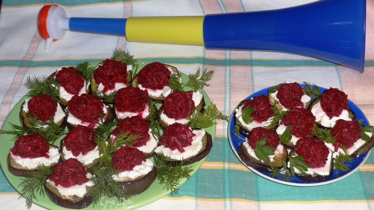 Закуска из баклажанов, свеклы и рикотты