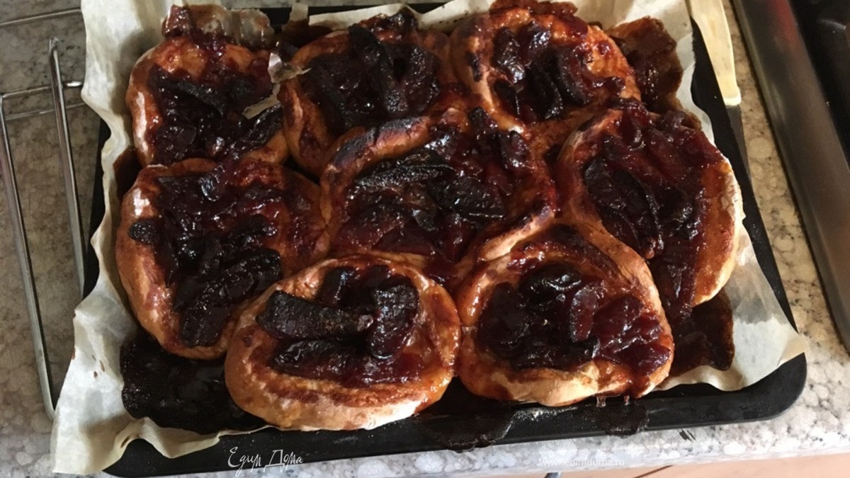 Из теста сформируйте булочки или ватрушки. Смажьте их взбитым яичным желтком и оставьте на противне на 10 минут, чтобы поднялись края булочек. Сверху на тесто положите начинку из варенья. Оно может быть любым. Крахмал нужен для того, чтобы начинка не растеклась.