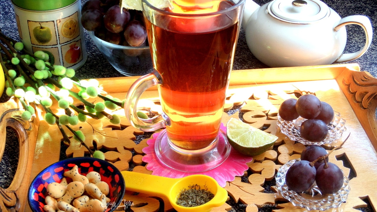 Жара продолжается, ищу варианты освежиться вкусным чаем. Пьем охлажденным. За рецепт спасибо Светлане (subsidii66)! По желанию, добавляйте сахар. От себя добавила дольку лайма.