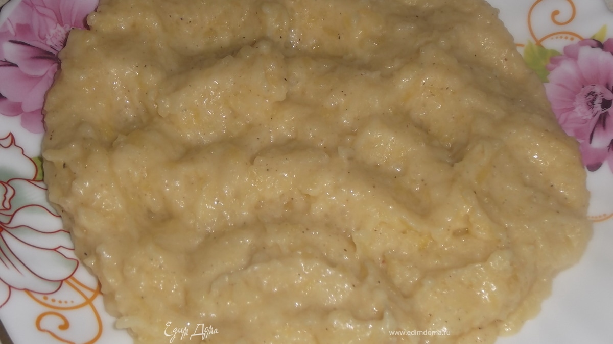 Когда все масло растворится в картофеле, снять сотейник с огня, влить молоко. - Шаг 5