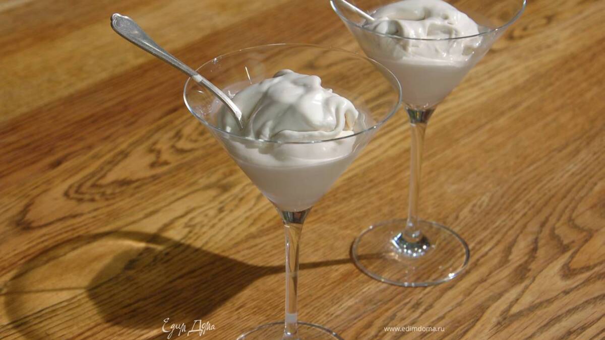 Перелить горячую массу в пластиковый контейнер (если есть комочки, можно процедить через сито), охладить, затем отправить на 6 часов в морозильник либо воспользоваться машинкой для приготовления мороженого.