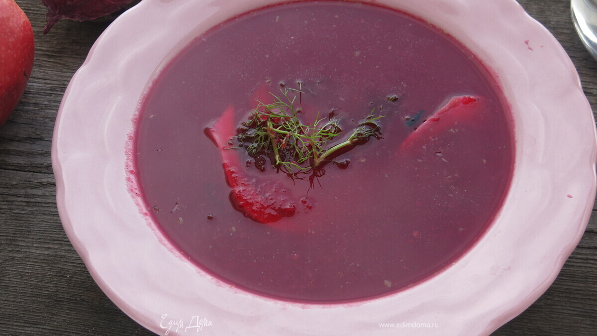 Представляю свекольник с яблоком и фенхелем. Вкус несколько отличается от обычного свекольника. Можно подавать как холодным, так и теплым. Анисовый вкус фенхеля уравновещивается кислинкой яблок и масляной заправкой. Приятного!