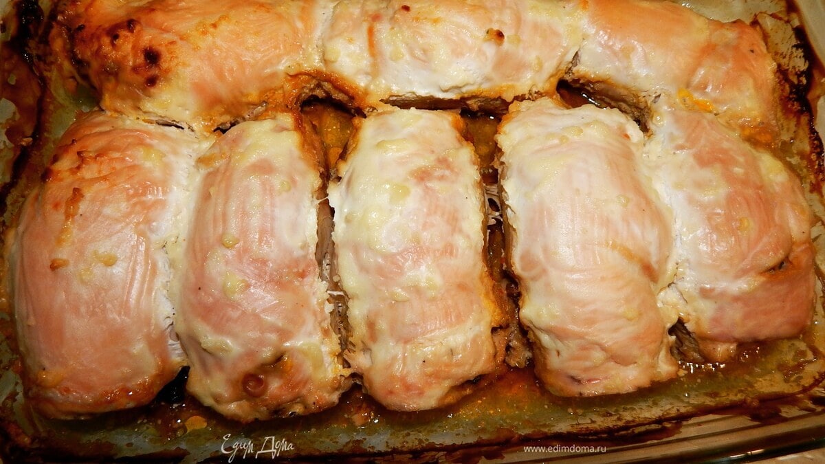 Рецепт моего мужа. Рулетики получаются очень сочными и вкусными, поэтому фото в разрезе не успела сделать)
