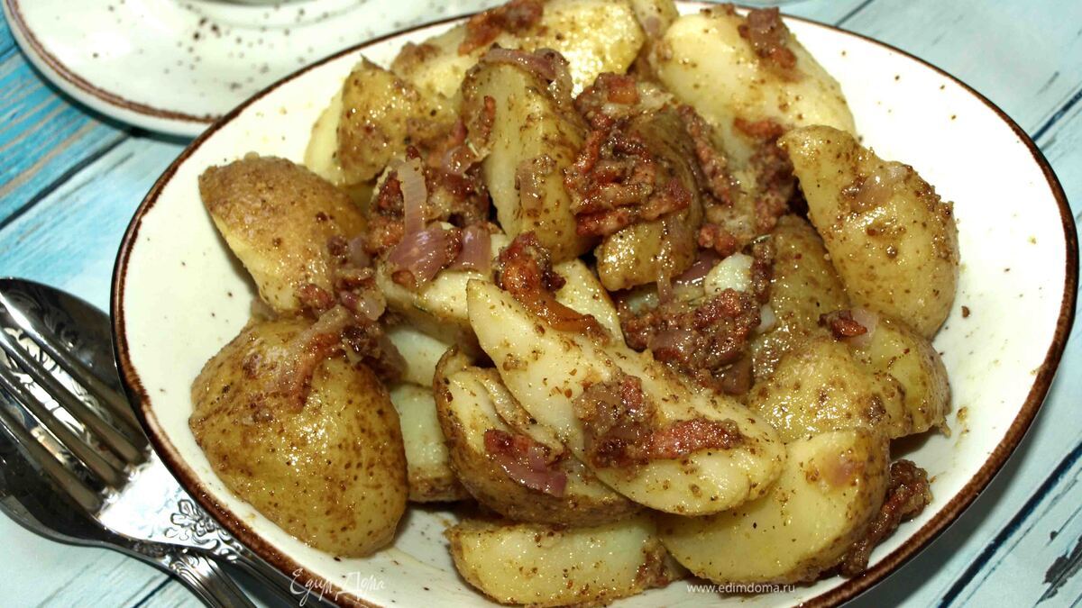 Модификация немецкого картофельного салата. Рецепт нашла в одном кулинарном блоге. Картофель заиграл новыми красками. Очень вкусное блюдо. Можно подавать как самостоятельное