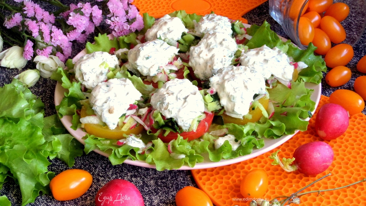Мегапростой рецепт! Справитесь за 5 минут перед ужином или для дополнительного перекуса во время вечернего просмотра телевизора. И это тот самый случай, когда и на стол гостям не стыдно поставить! А неожиданные гости замучают вопросом: и когда успели приготовить блюдо?! За идею спасибо Вере Нерозя! От себя добавила редиску и приправы. Смело рекомендую с сезонными овощами.