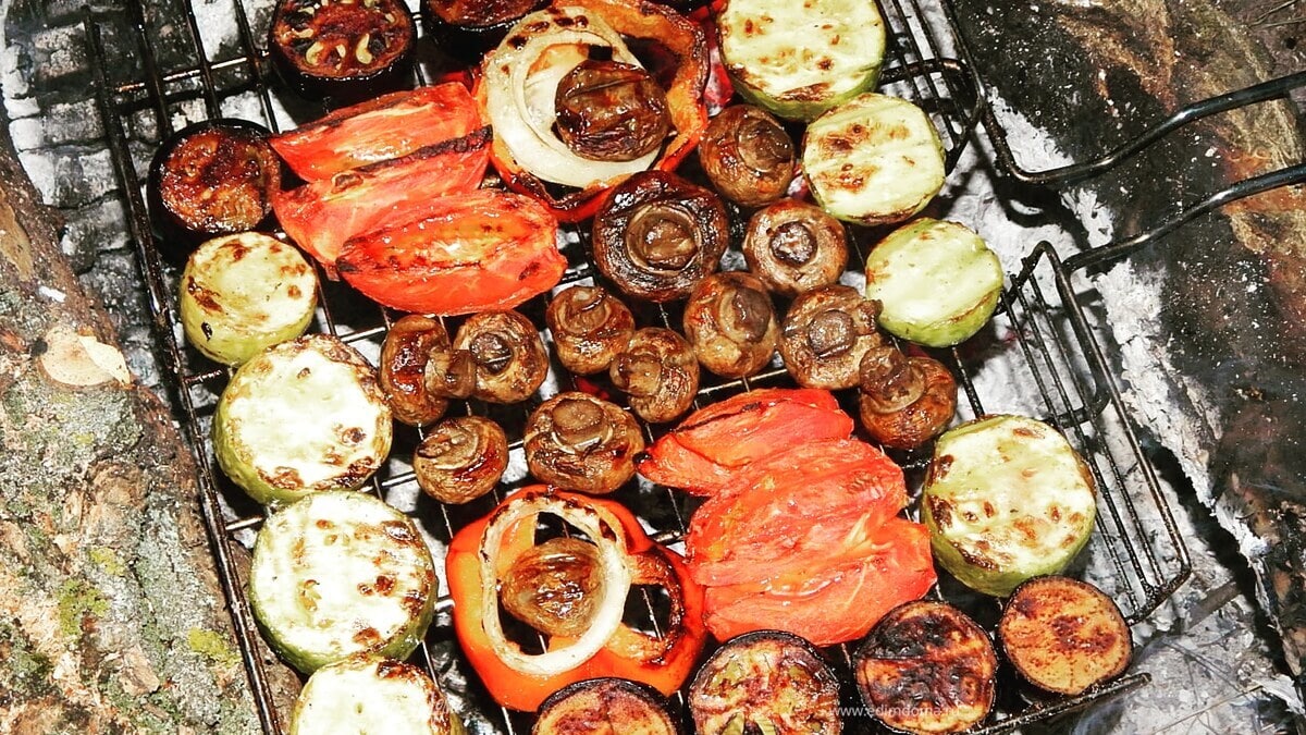 Жарим овощи с двух сторон минут 20, периодически переворачивая решетку. Подаем к столу и болеем за нашу команду;) Приятного аппетита!