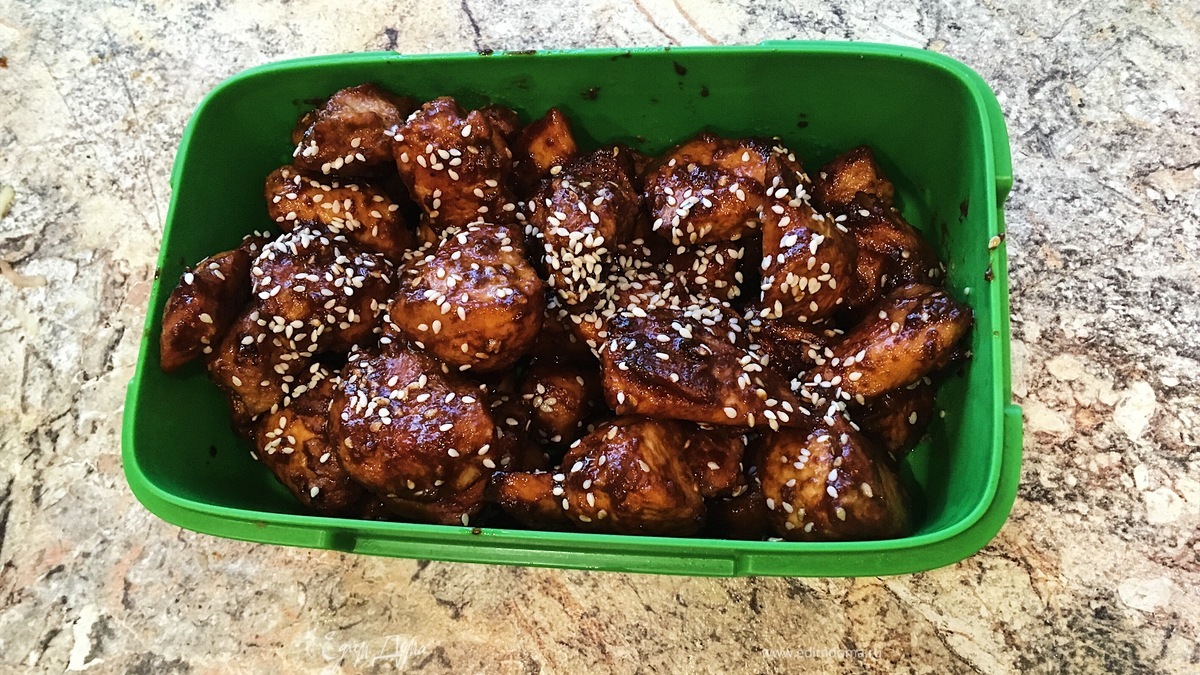 Сверху мясо посыпать кунжутом (по желанию). Подавать такую курицу лучше всего с рисом. Приятного аппетита!