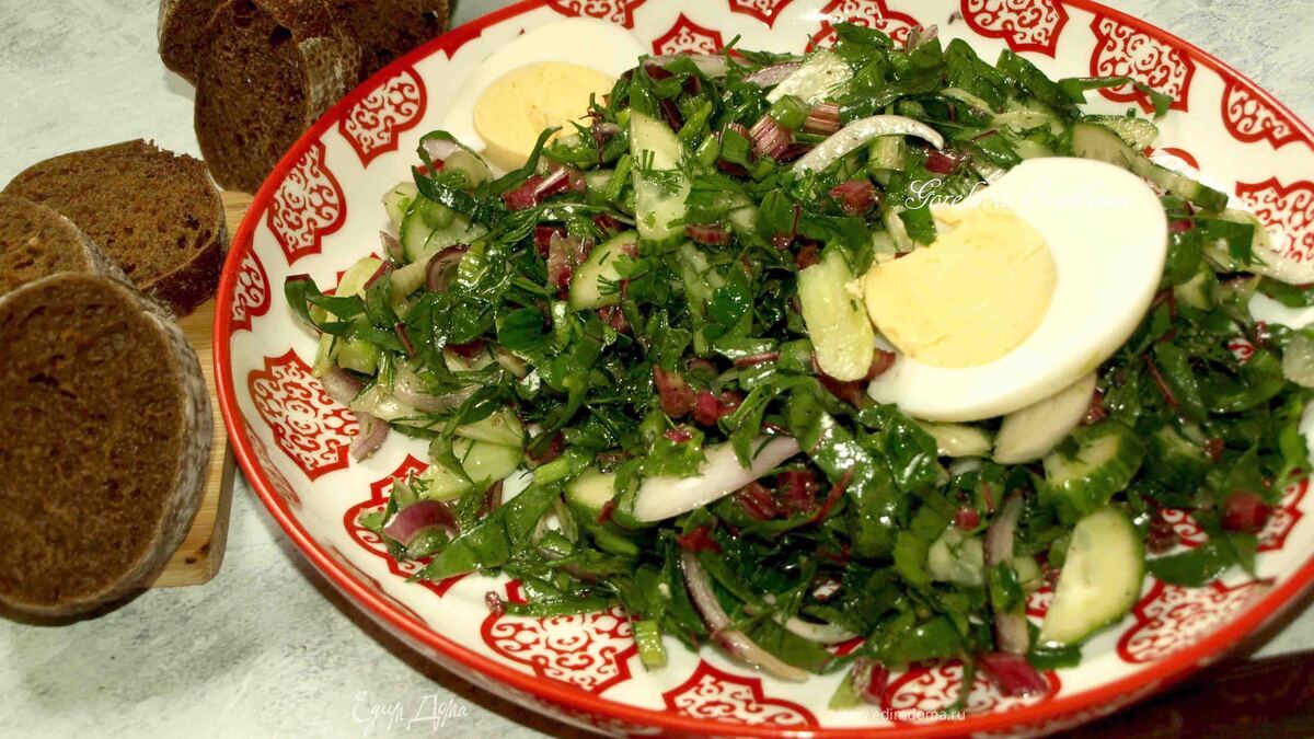 Лето — время свежих, по-особенному ароматных овощей и зелени. Очень вкусный, полезный салат для обеда. Яйца можно заменить отварной или запеченной курицей.