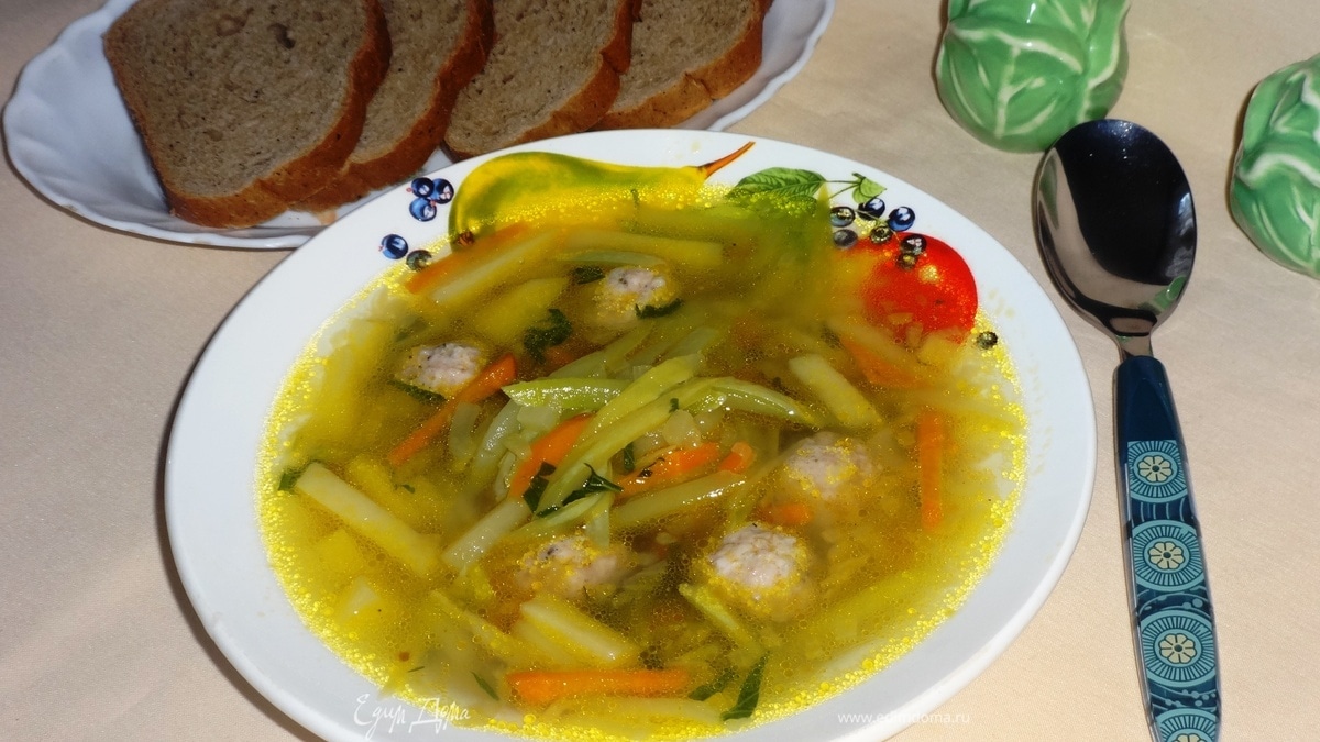 Суп с фрикадельками и кабачковой лапшой