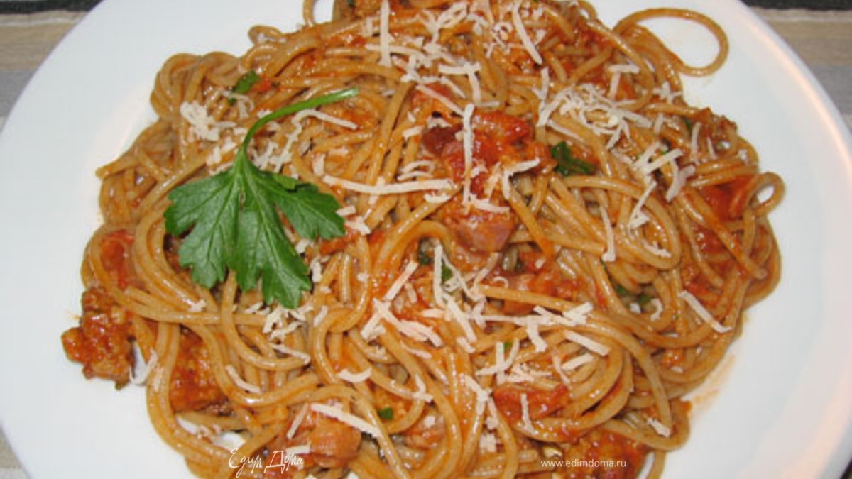 - Шаг 1В оливковом масле обжарить чеснок,когда он станет золотистым,достаньте его и в том же масле обжарьте миндаль.Положите к ним размятые помидоры из банки,перец,лук,подержите на маленьком огне,пока лук не станет мягким.Добавьте апельсиновый сок и цедру,посолите и поперчите по-вкусу,добавьте базилик и потушите все минут 10.В это время уже должна вскипеть вода,посолите ее и влейте ложку оливкового масла и сварите спагетти.Соус и спагетти будут готовы одновременно,перекладите спагетти в сковороду к соусу,перемешайте и выкладывайте на тарелки
