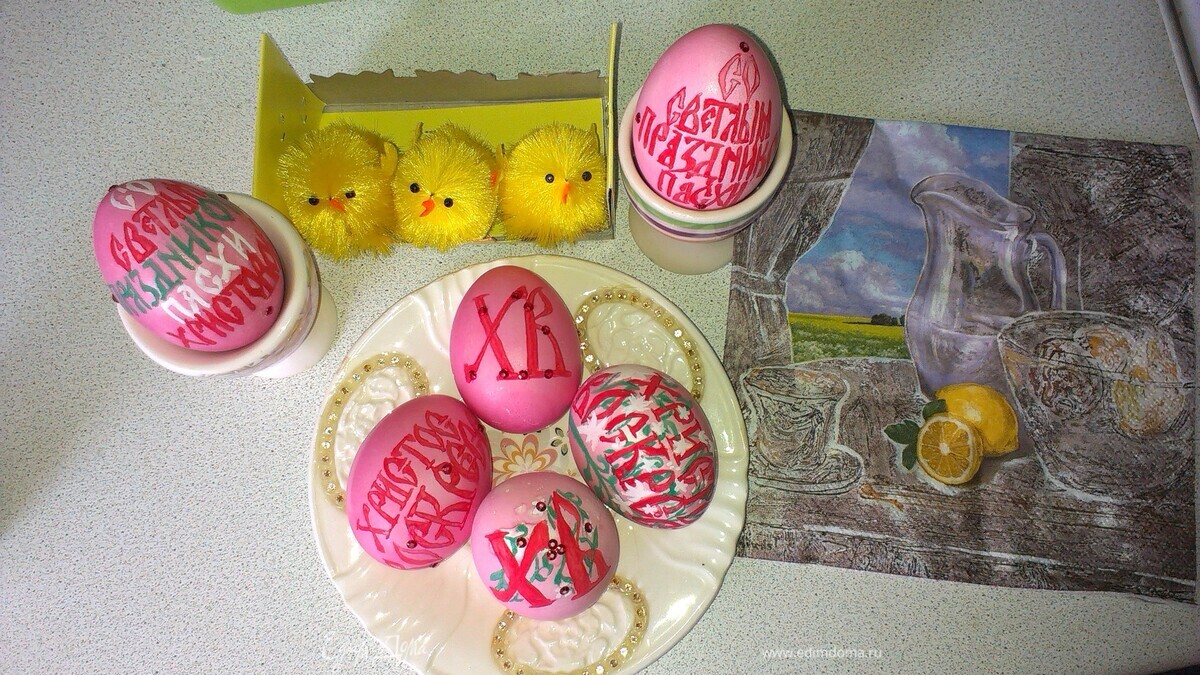 Оригинально расписать пасхальные яйца можно с помощью букв славянского
